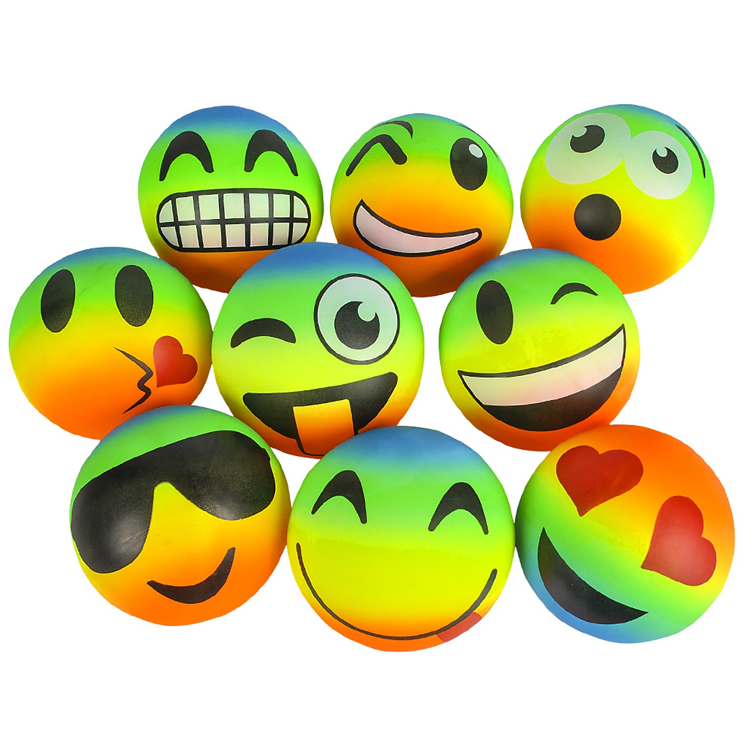 Inflatable Emoji Rainbow Balls - 6 Inch - 10 Count